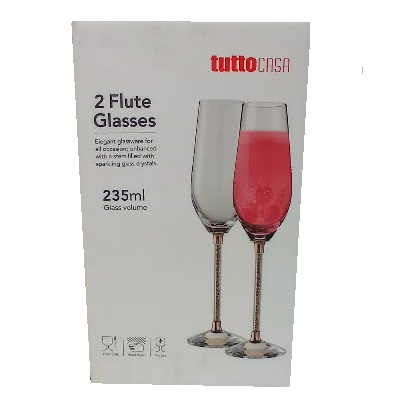 Producto: COPA DE FLAUTA DE VIDRIO 2 PC 235 ML TUTTO CASA 4 X 23 CM