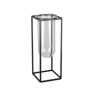 FLORERO DE METAL CON VASO DE VIDRIO 29 X 10 CM