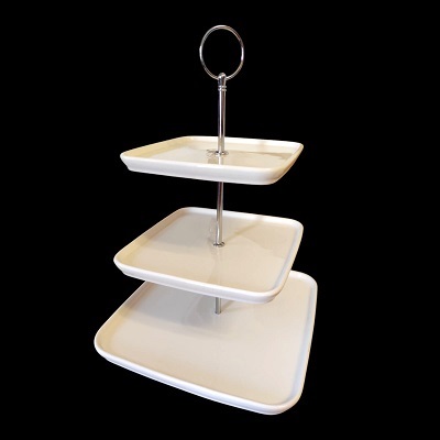 Producto: PASTELERO DE CERAMICA BLANCA 3 NIVELES 27 CM