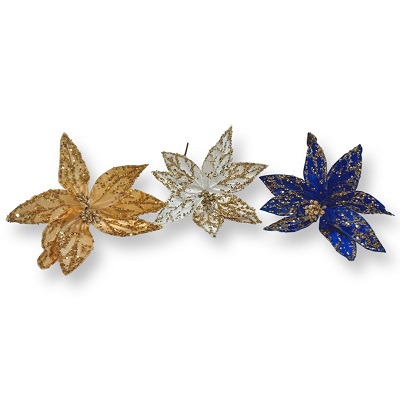 FLOR NAVIDEÑA DE TERCIOPELO CON LENTEJUELAS 30 CM