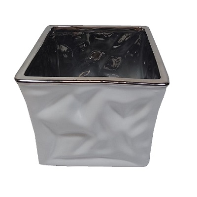 Producto: FLORERO CUADRO DE VIDRIO COLOR BLANCO Y PLATEADO 15 X 19 CM