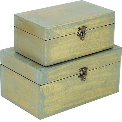 JUEGO DE 2 COFRES VERDE/DORADO